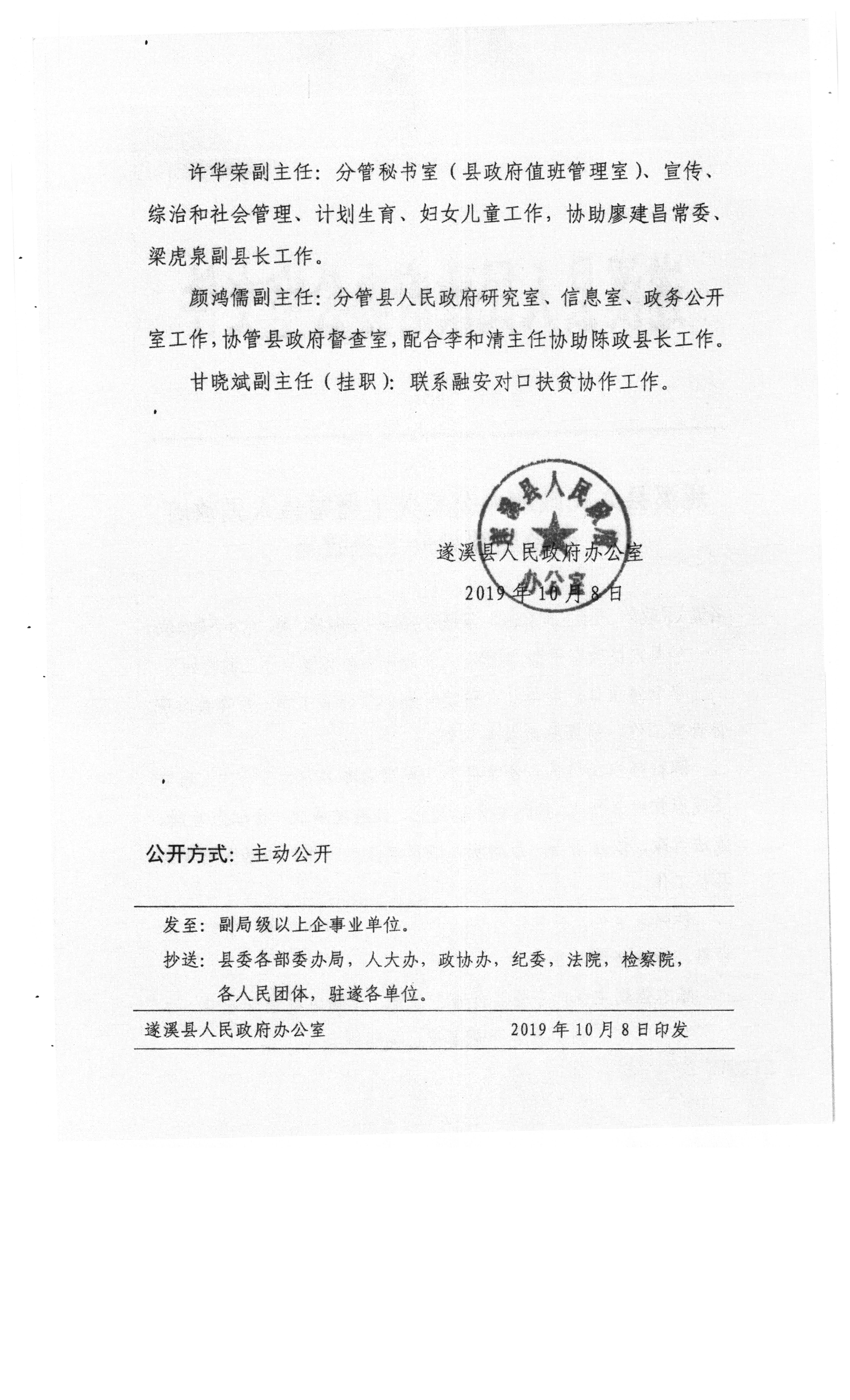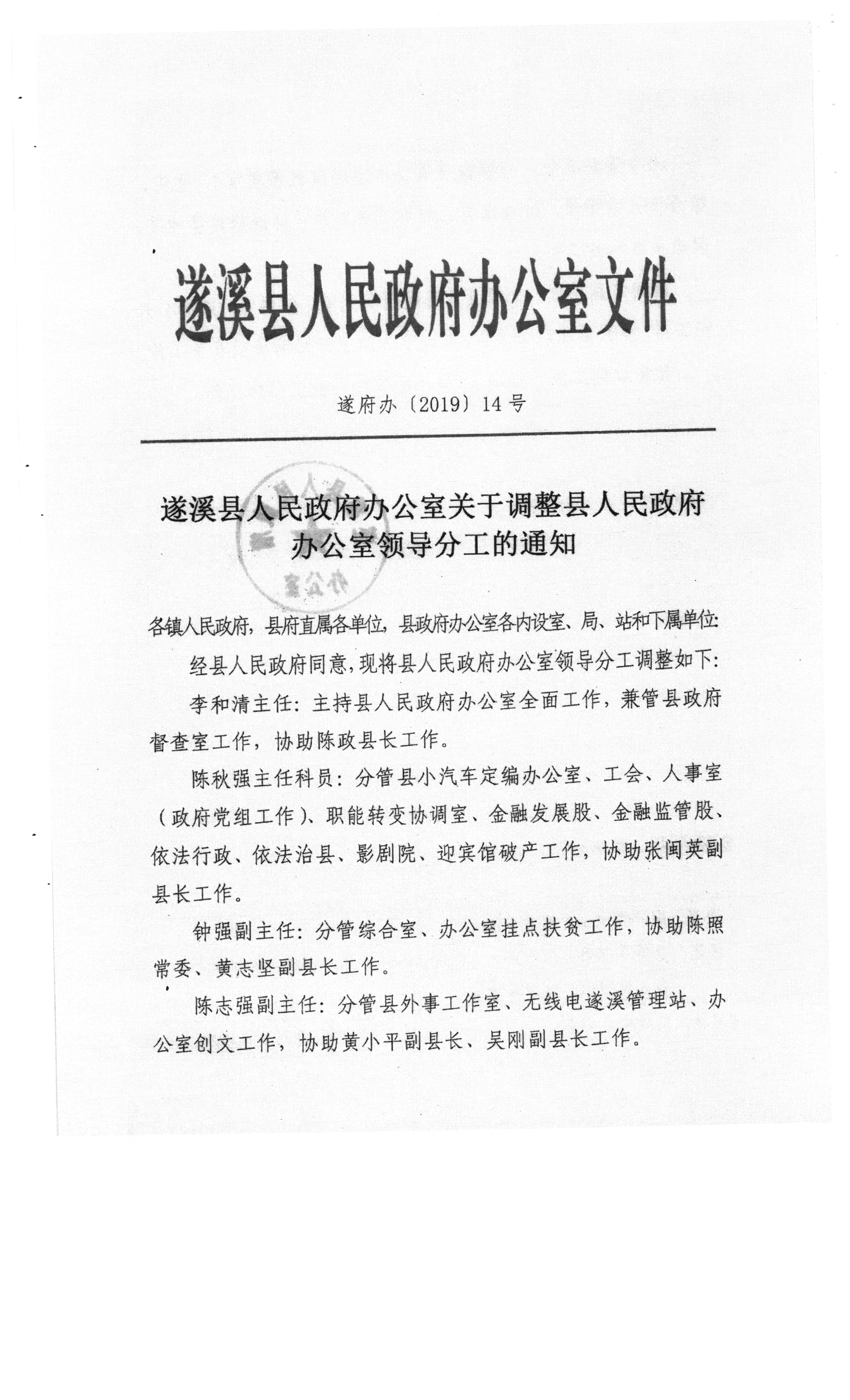 遂溪縣人民政府辦公室關(guān)于調(diào)整縣人民政府辦公室領(lǐng)導(dǎo)分工的通知(遂府辦〔2019〕14號(hào))