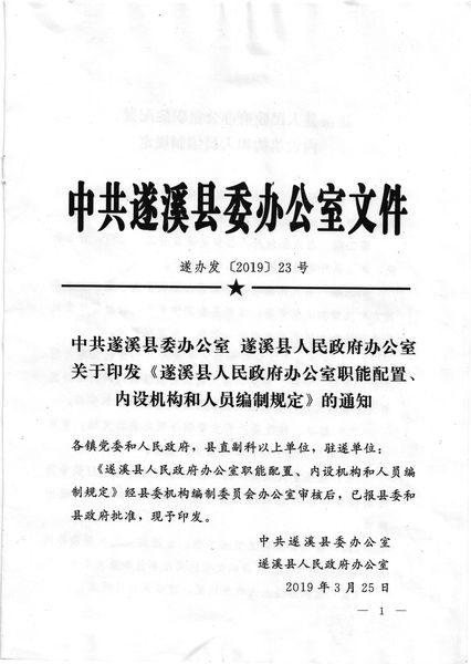 遂溪縣人民政府辦公室職能配置、內(nèi)設(shè)機(jī)構(gòu)和人員編制規(guī)定