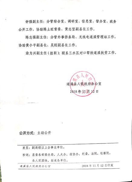 遂溪縣人民政府辦公室關(guān)于調(diào)整縣人民政府辦公室領(lǐng)導(dǎo)分工的通知(遂府辦〔2018〕32號)