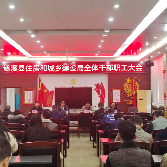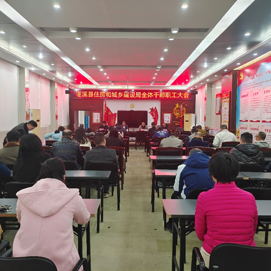 2024年2月8日,遂溪縣住房和城鄉(xiāng)建設(shè)局組織召開全體干部職工會(huì)議,回顧總結(jié)2023年工作,展望2024年工作任務(wù),部署2024年春節(jié)期間工作。會(huì)議由黨組書記、局長鄭輝同志作總結(jié)講話和工作部署,縣住建局副科以上領(lǐng)導(dǎo)干部、各股室成員和下屬單位負(fù)責(zé)人共60多人參加會(huì)議。