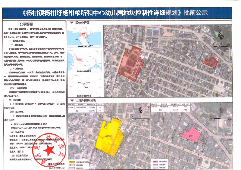 《楊柑鎮(zhèn)楊柑圩楊柑糧所和中心幼兒園地塊控制性詳細(xì)規(guī)劃》批前公示