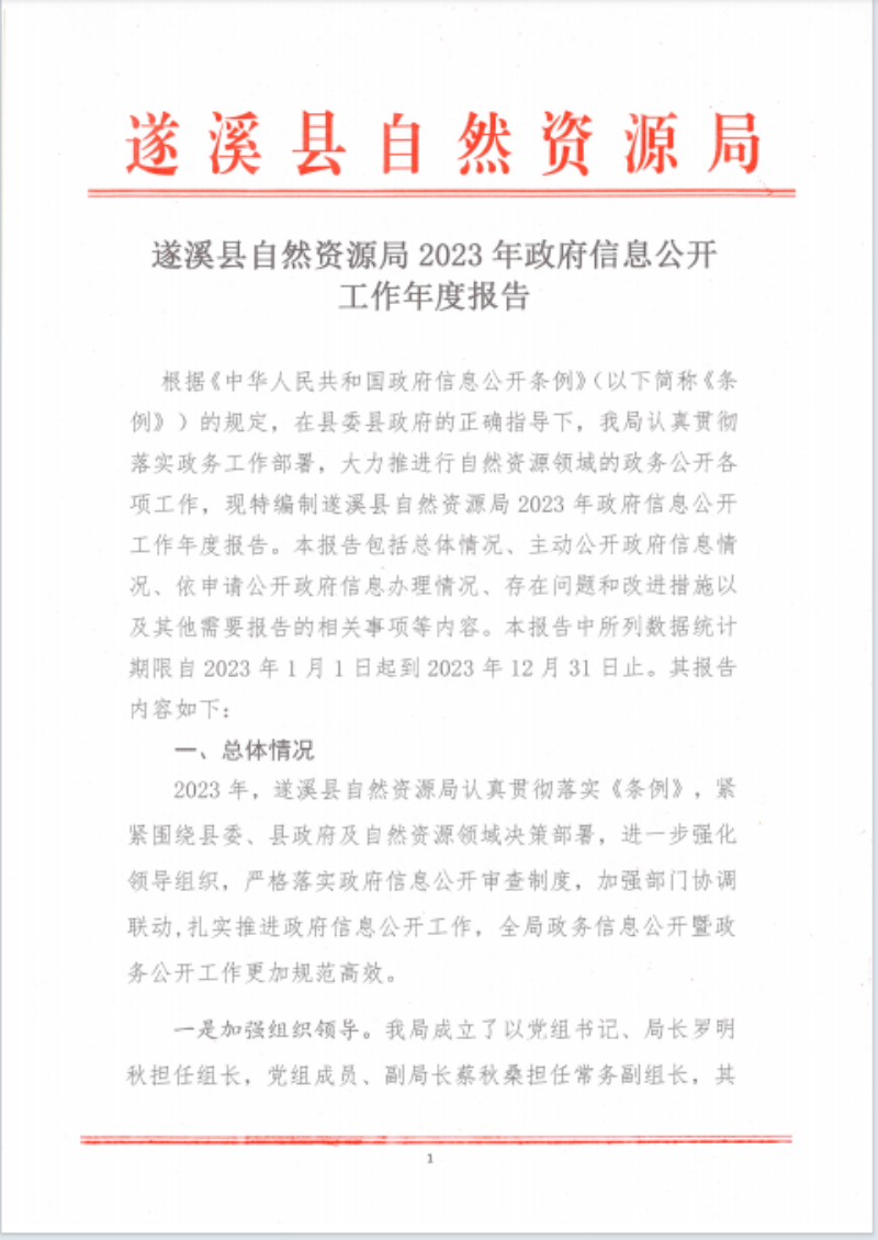 遂溪縣自然資源局2023年政府信息公開工作年度報告