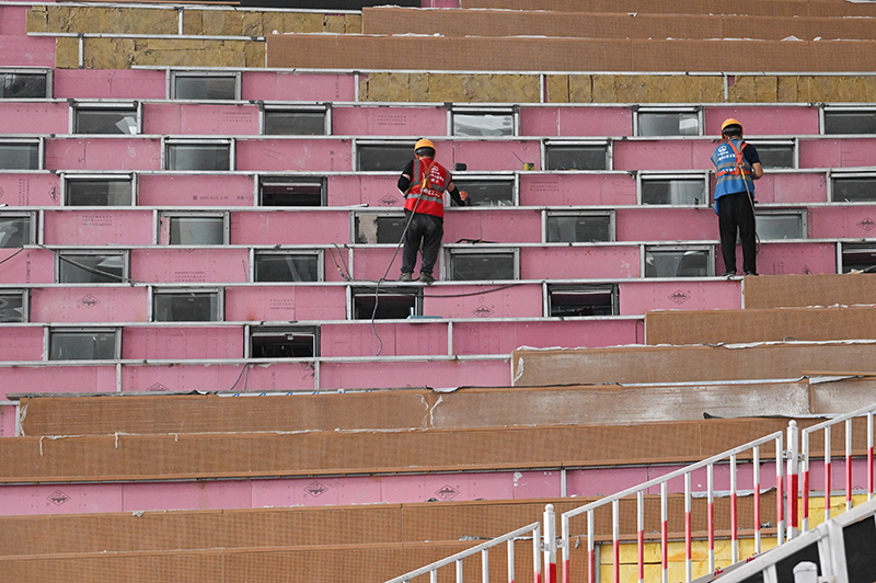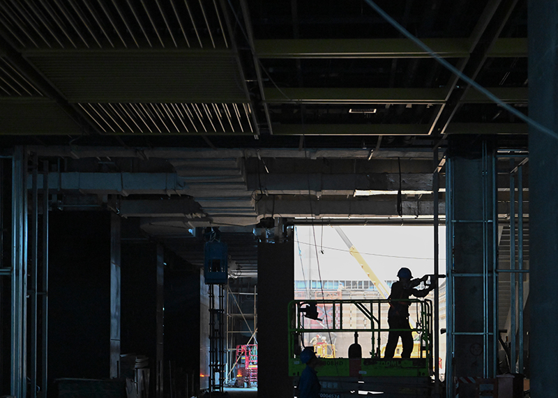 7月13日,工人在北京城市副中心圖書館項目施工現(xiàn)場施工。