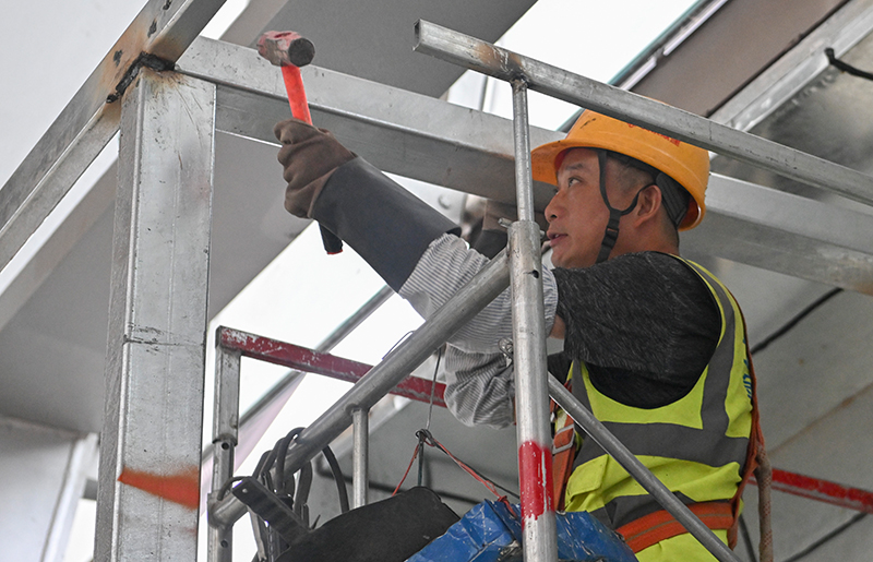 7月13日,工人在北京城市副中心博物館項目施工現(xiàn)場施工。