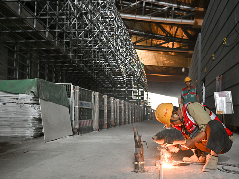 7月12日,工人在北京城市副中心劇院項目施工現(xiàn)場施工。