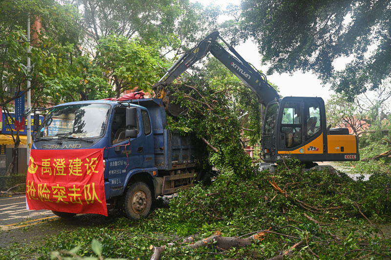 7月29日,在福建泉州市區(qū),來自民間的搶險(xiǎn)救援隊(duì)清理倒伏在主干道的樹木。