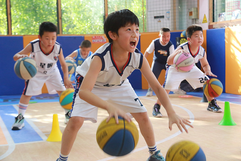 10月2日,孩子們?cè)谏綎|省高密市一籃球訓(xùn)練營(yíng)進(jìn)行籃球基本功訓(xùn)練。