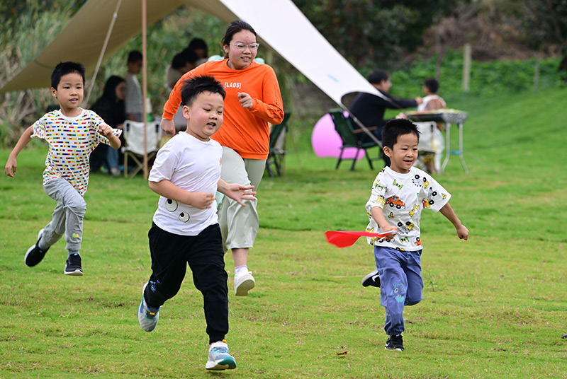 10月3日,小朋友在江蘇省淮安市金湖縣呂良鎮(zhèn)三園村一處農(nóng)莊追逐玩耍。