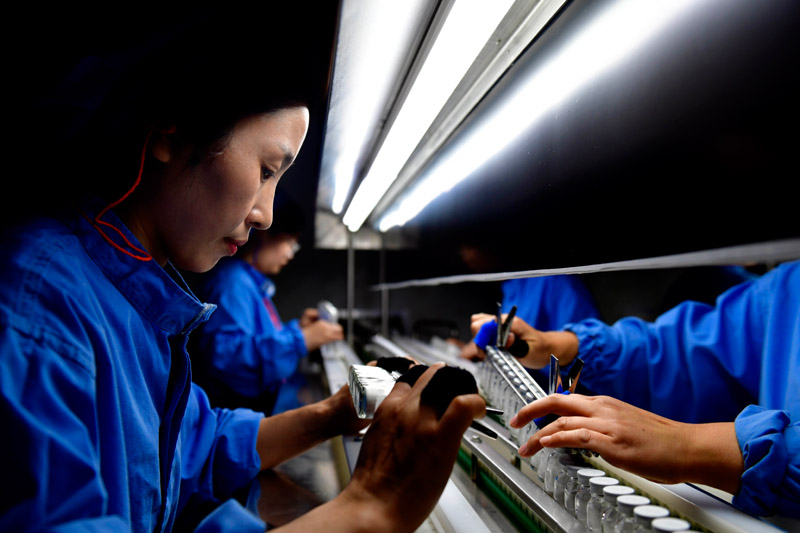 10月29日,在山東二葉制藥有限公司拍攝的藥品生產(chǎn)線。