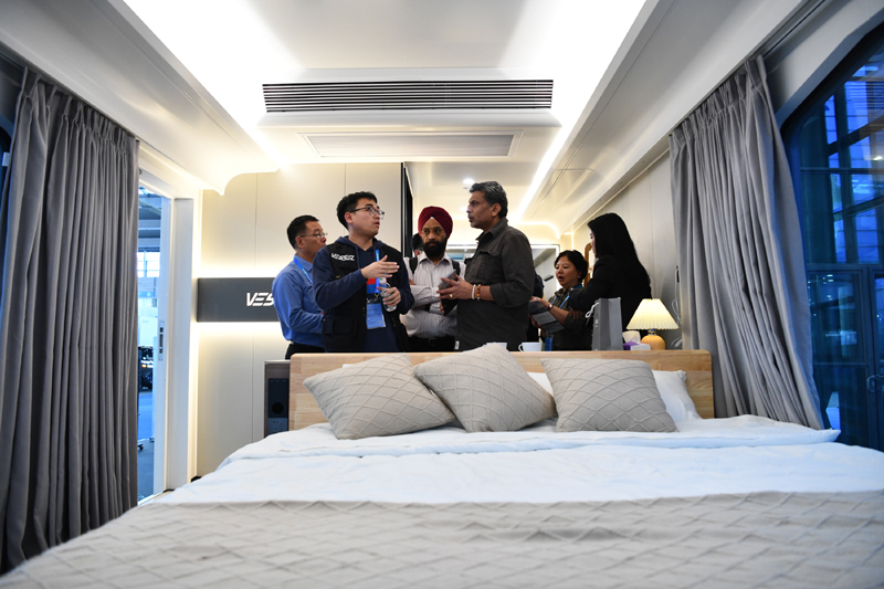 11月15日,觀眾在第二十五屆高交會上了解一款微宿客艙。