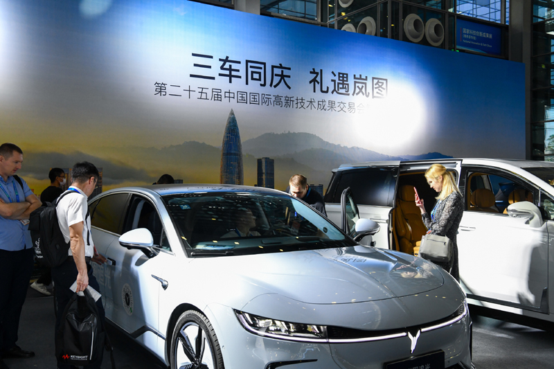 11月15日,觀眾在第二十五屆高交會嵐圖展臺了解一款新能源汽車。
