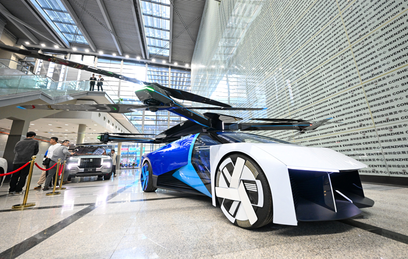 11月15日,在第二十五屆高交會上,機(jī)臂、旋翼等飛行系統(tǒng)可以完全折疊收納的小鵬匯天陸空一體式飛行汽車對公眾展出。
