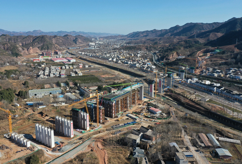 這是由中鐵二十局集團(tuán)承建的西十高鐵陜西商洛段南秦河特大橋施工現(xiàn)場(2023年12月4日攝,無人機(jī)照片)。新華社記者 張博文 攝