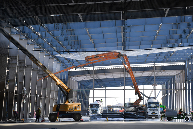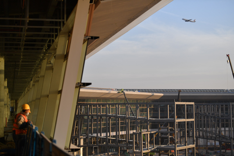 工人在西安咸陽國際機(jī)場三期擴(kuò)建項(xiàng)目施工現(xiàn)場工作(2023年11月29日攝)。新華社記者 張博文 攝