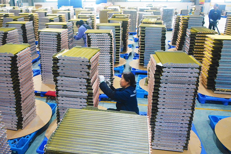 2月21日,在安徽省安慶市岳西經濟開發(fā)區(qū)一企業(yè)車間,工人在空調冷熱交換器生產線上忙碌。