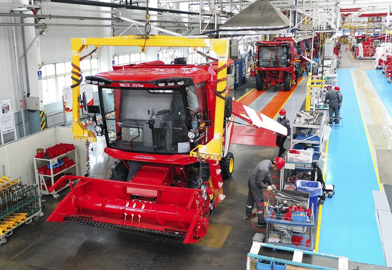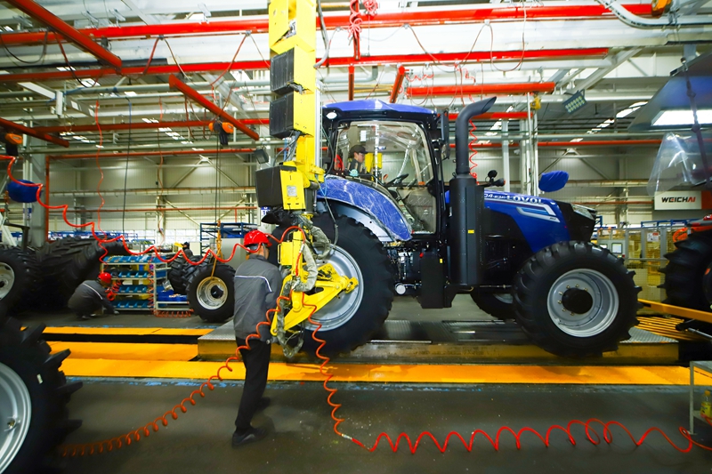2月20日,在位于山東省濰坊市坊子區(qū)的濰柴雷沃智慧農業(yè)科技股份有限公司,工人在大型農機生產車間忙碌。