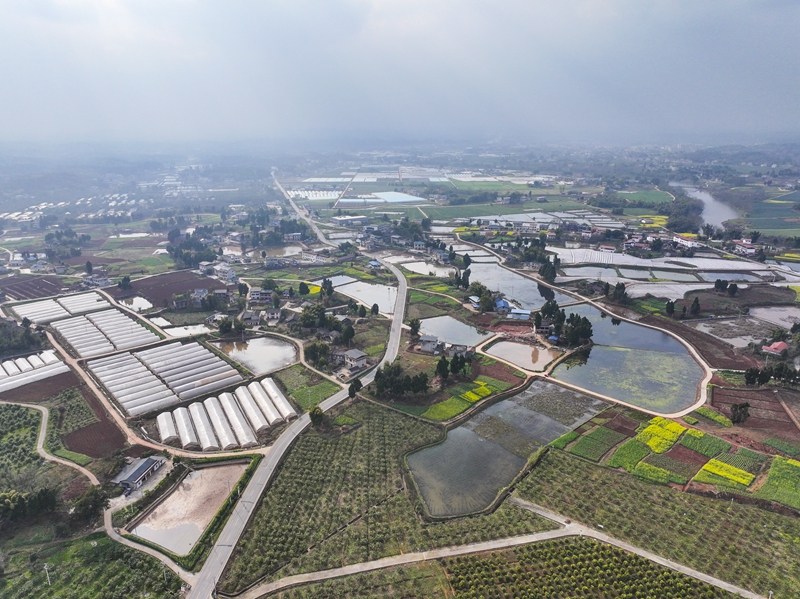 這是2月26日拍攝的重慶市潼南區(qū)柏梓鎮(zhèn)一帶景象(無人機照片)。