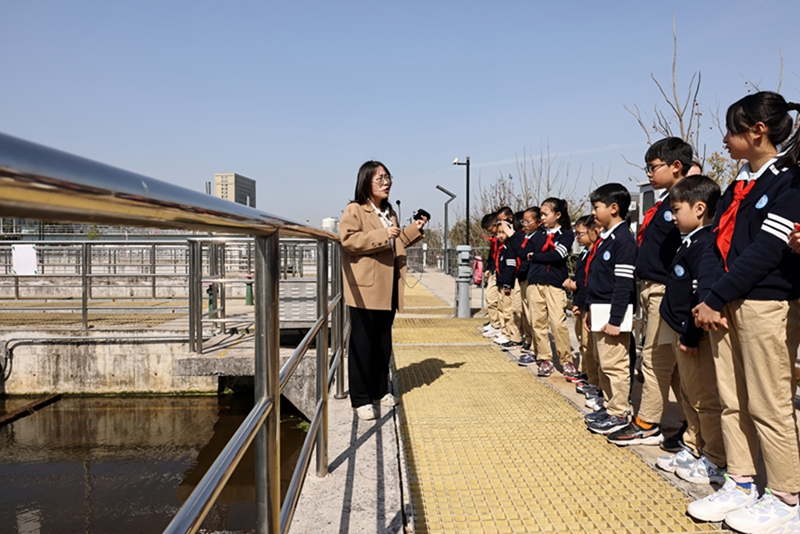 3月21日,浙江省東陽市江北中心小學學生來到東陽市污水處理廠了解污水處理知識。