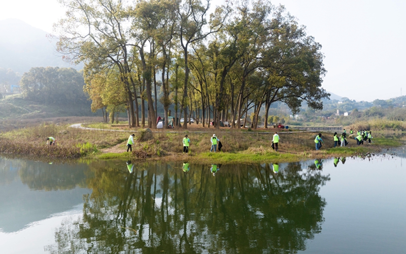 3月21日,在重慶市北碚區(qū)澄江鎮(zhèn)柏林村,生態(tài)環(huán)保青年志愿者在清理河畔垃圾。