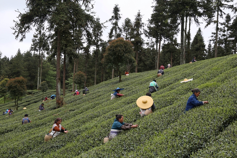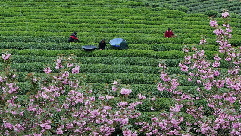 時值春茶采摘旺季,貴州省遵義市鳳岡縣50多萬畝茶葉長勢喜人,采茶的村民忙碌在高低錯落的茶園,勤勞的身影描繪出生機勃勃的美麗畫卷。