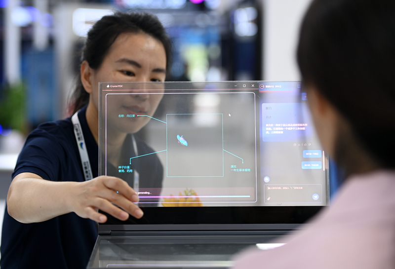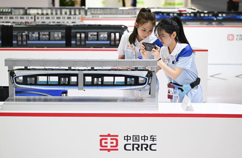 6月20日,志愿者在博覽會智能交通與智能建造展區(qū)參觀。
