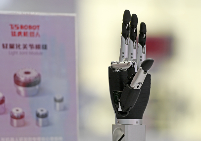 6月20日在博覽會現(xiàn)場拍攝一款輕量化關(guān)節(jié)模組手臂。