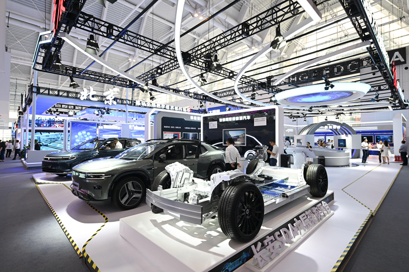 6月20日,參觀者在博覽會智能網(wǎng)聯(lián)汽車展區(qū)參觀。