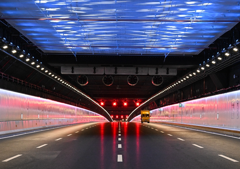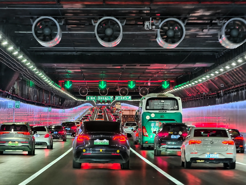 這是開通首日的深中通道海底沉管隧道內的車流(6月30日攝)。