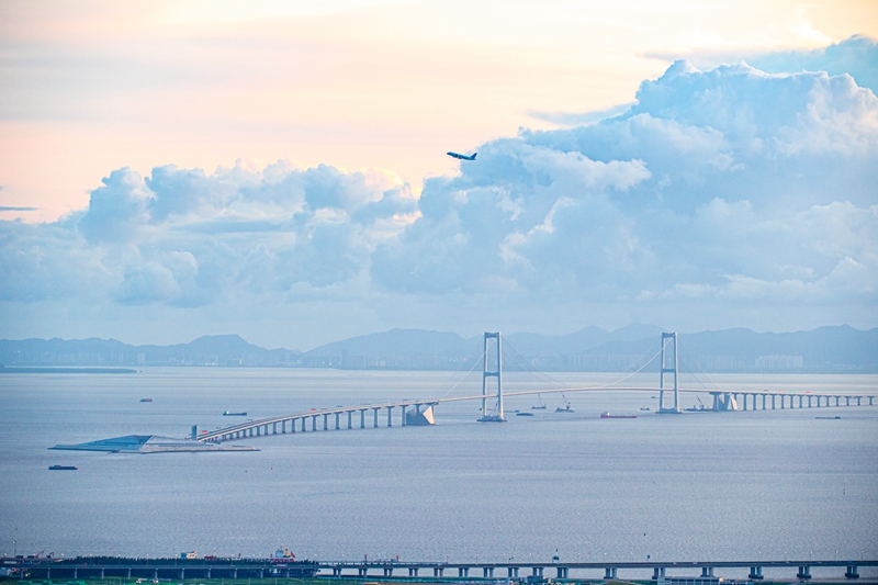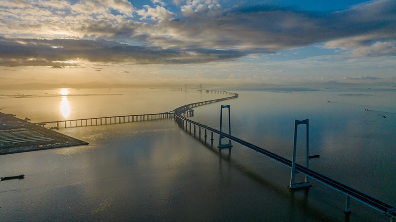 6月27日,沐浴在晨曦中的深中通道(無人機照片)。
