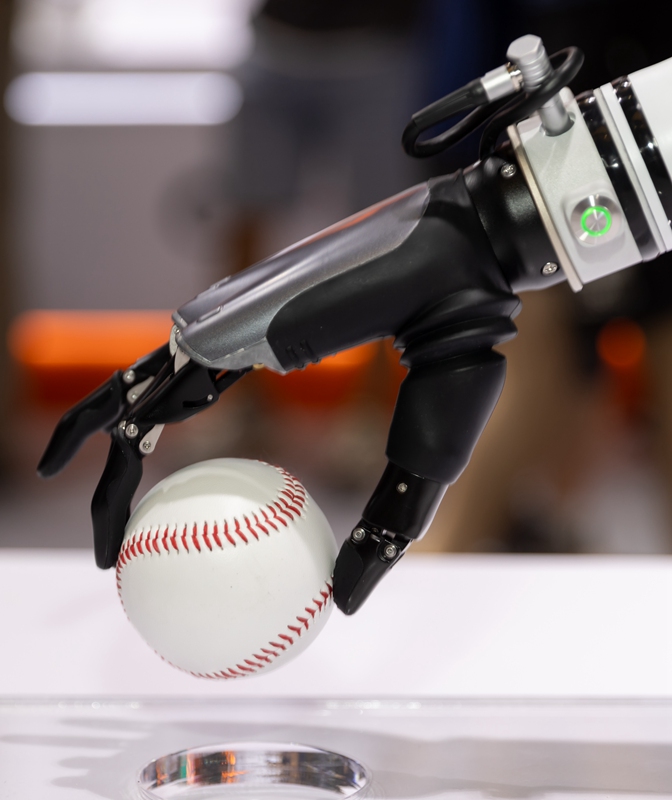 7月4日在2024世界人工智能大會傲意科技展位拍攝的機器人靈巧手。