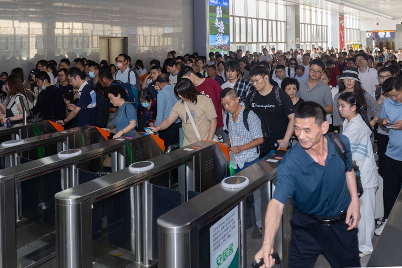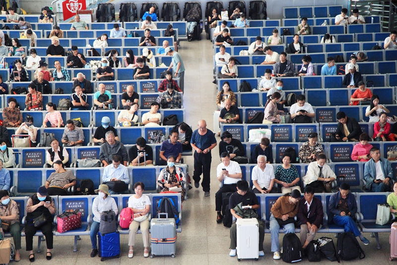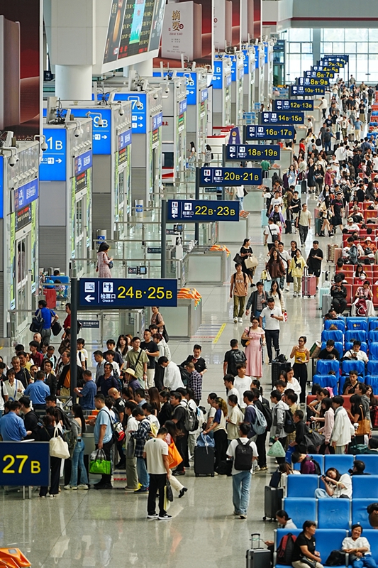 9月29日,旅客在貴陽北站候車大廳排隊(duì)檢票。