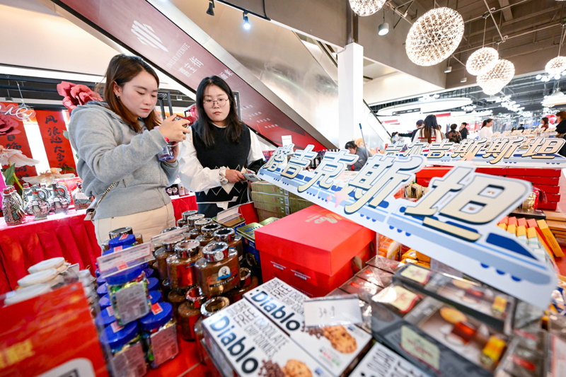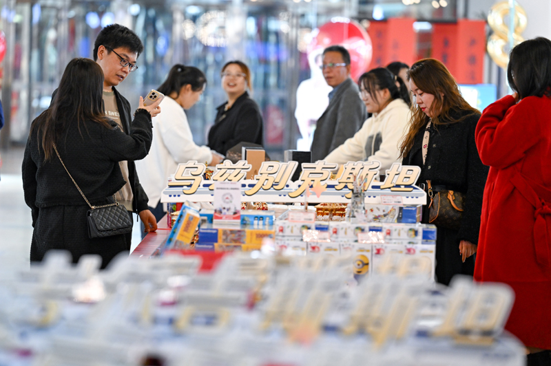 10月26日,消費(fèi)者在中亞特色商品展示展銷中心現(xiàn)場選購商品。