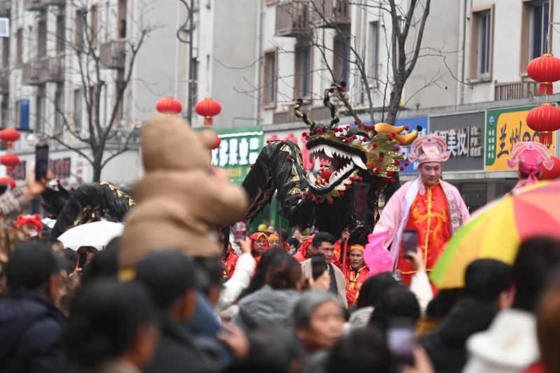 2月11日,表演隊(duì)伍在杭州市西湖區(qū)雙浦鎮(zhèn)袁浦街巡游。