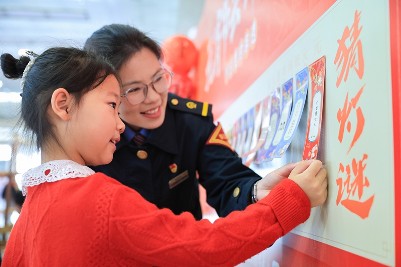 2月11日,小朋友在南京南站舉辦的迎接元宵節(jié)活動(dòng)上猜燈謎。