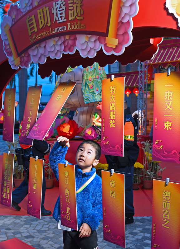 2月11日,一名兒童在香港尖沙咀猜燈謎。