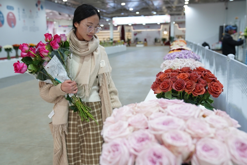 3月24日,游客在麗江現(xiàn)代花卉產(chǎn)業(yè)園挑選鮮花。