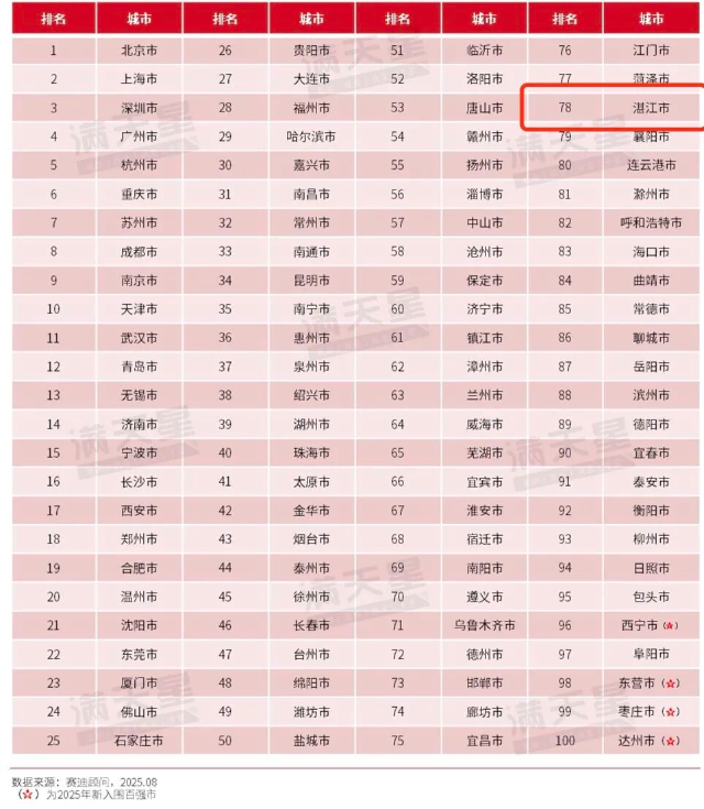 湛江市以全國第78名的位次
