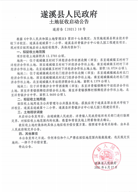 遂溪縣人民政府土地征收啟動公告 遂府告﹝2021﹞10號