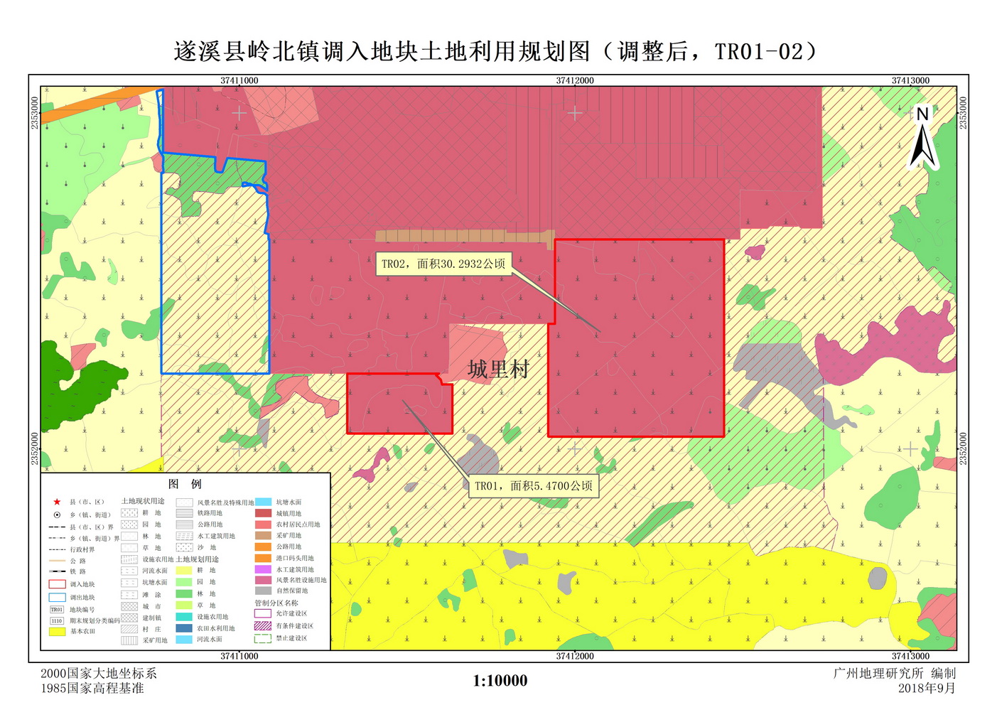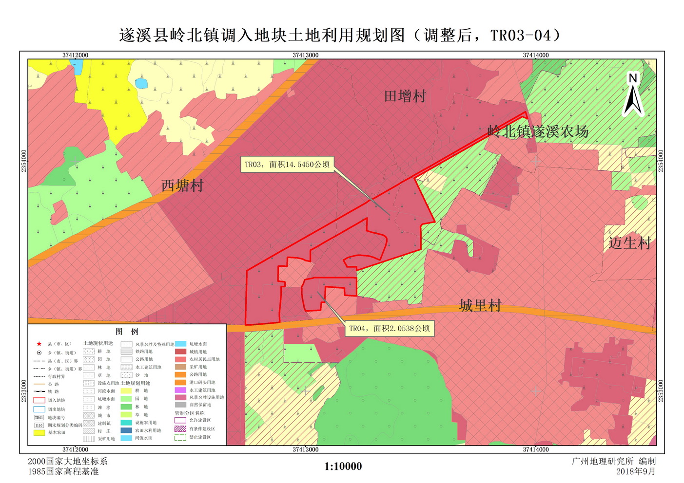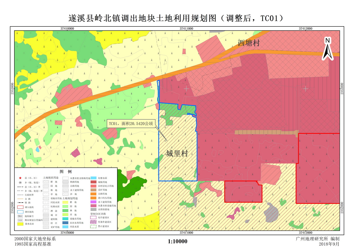 調(diào)入地塊位于嶺北鎮(zhèn)城里村、田增村、西塘村,以及嶺北鎮(zhèn)遂溪農(nóng)場,總面積為52.3620公頃,原規(guī)劃作為耕地、園地及林地使用,建設(shè)用地空間管制分區(qū)類型為有條件建設(shè)區(qū),現(xiàn)將該地塊的規(guī)劃用途調(diào)整為城鎮(zhèn)用地,劃為土地用途分區(qū)的城鎮(zhèn)建設(shè)用地區(qū),并劃入建設(shè)用地空間管制分區(qū)的允許建設(shè)區(qū)范圍內(nèi)。