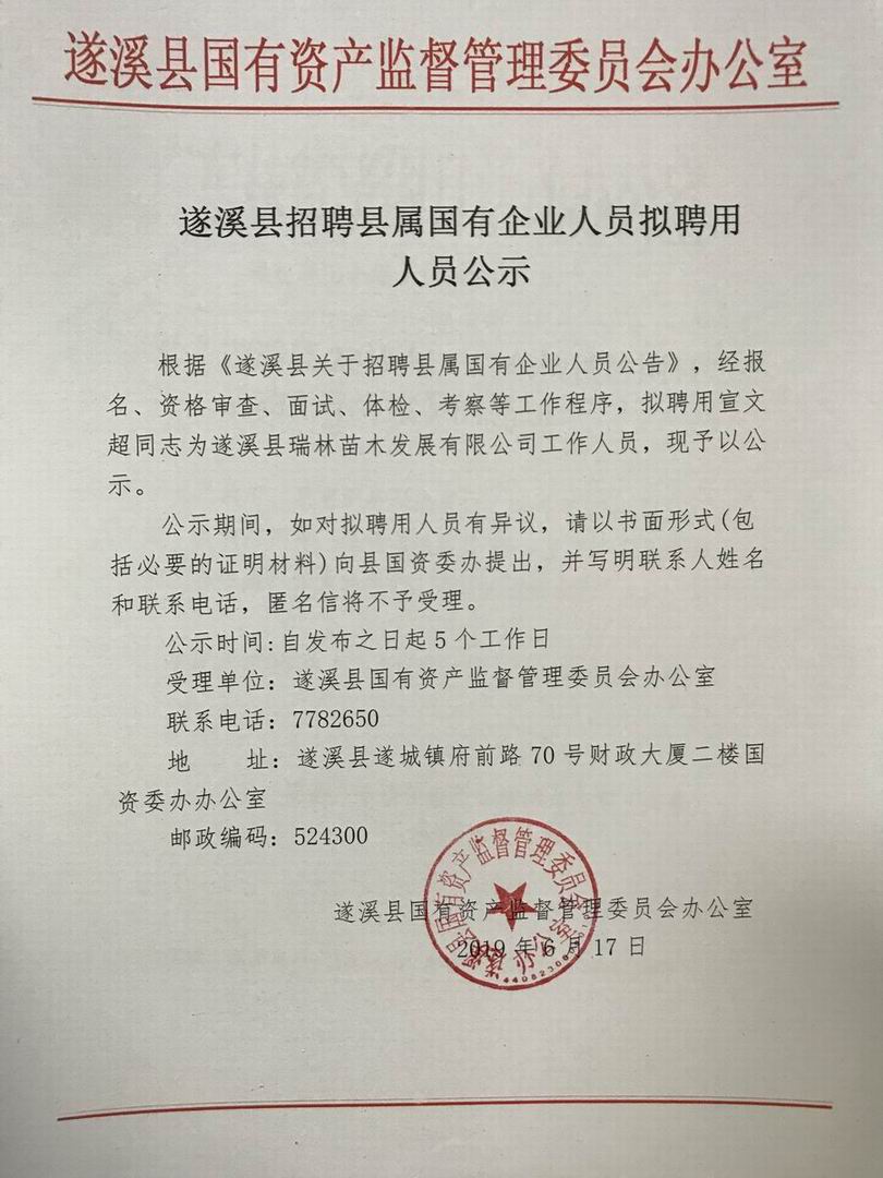 遂溪縣招聘縣屬國有企業(yè)人員擬聘人員公示
