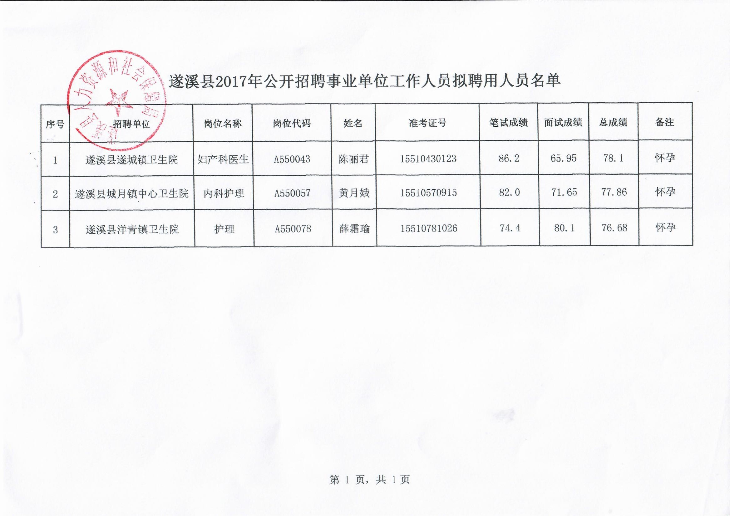 遂溪縣2017年公開招聘事業(yè)單位工作人員擬聘用人員公示