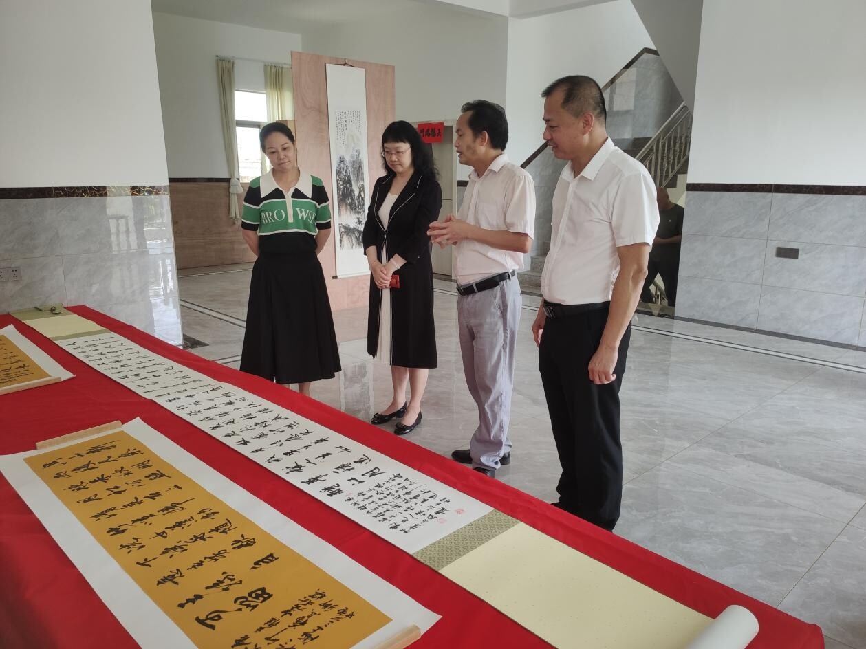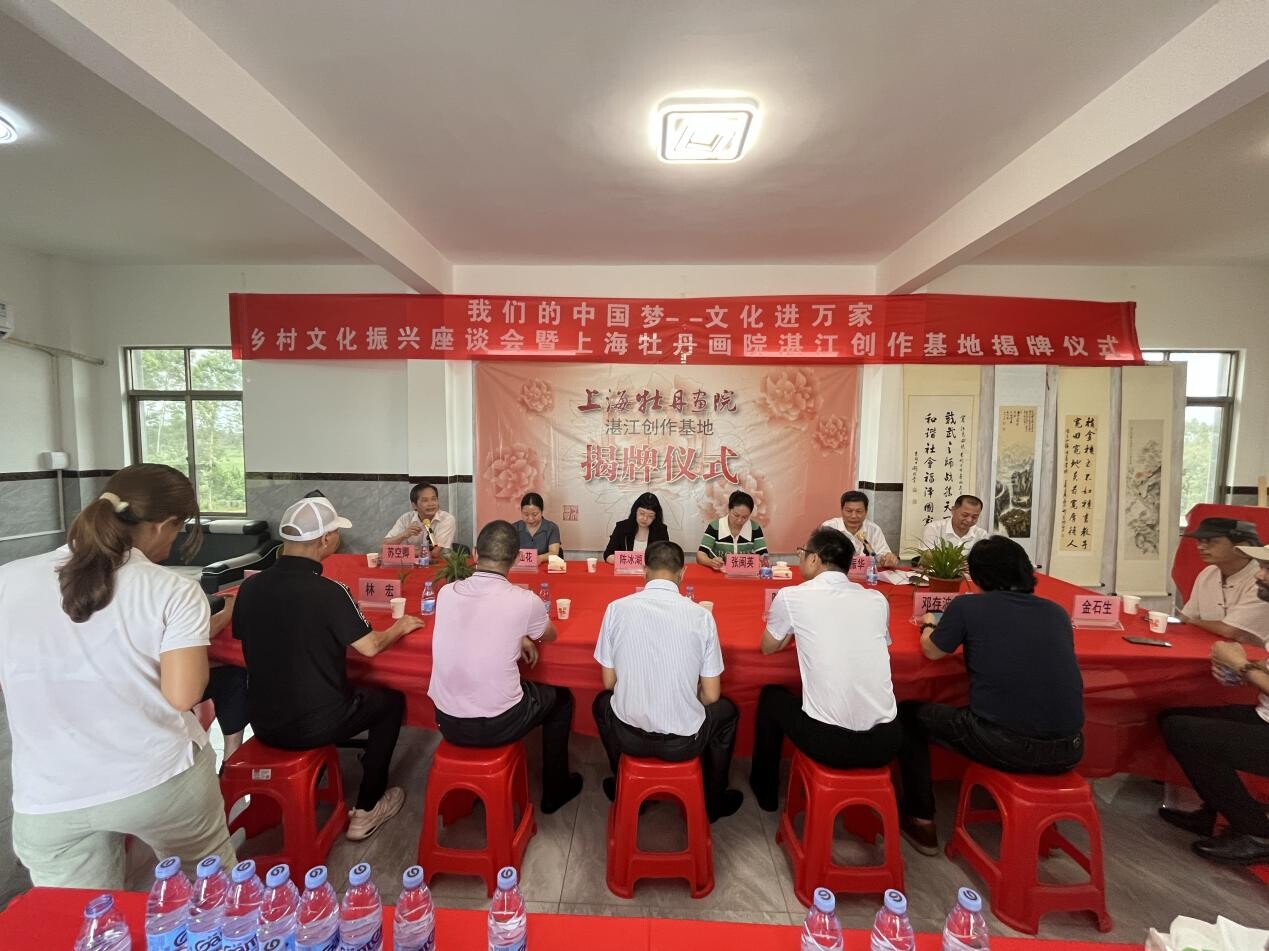 2023年5月26日上午,城月鎮(zhèn)在邦機村委會新村場村舉行“我們的中國夢-文化進(jìn)萬家”鄉(xiāng)村文化振興座談會暨上海牡丹畫院湛江創(chuàng)作基地揭牌儀式活動,湛江市文聯(lián)主席陳冰湖、市文聯(lián)副主席劉仙花,遂溪縣委常委、縣委宣傳部長張閩英等領(lǐng)導(dǎo)蒞臨指導(dǎo)工作。會上,陳冰湖主席指出,要重視文化事業(yè)發(fā)展,強化責(zé)任擔(dān)當(dāng),切實增進(jìn)文藝創(chuàng)作和文化傳承的使命感,充分發(fā)揮好基地的載體功能,找準(zhǔn)發(fā)展定位,探索新模式,推動文化活動向縱深發(fā)展,通過以點帶面,持續(xù)推進(jìn)“百千萬”工程,不斷助力文化發(fā)揚光大,促進(jìn)鄉(xiāng)村文化振興走深走實。會后,陳冰湖主席一行進(jìn)行揭牌,并參觀了書法繪畫作品展覽。縣文聯(lián)全體人員、各協(xié)會負(fù)責(zé)人、上海牡丹畫院領(lǐng)導(dǎo)及相關(guān)人員、鎮(zhèn)人大主席陳懷東等陪同參加活動。