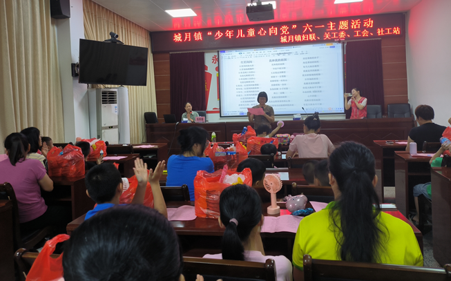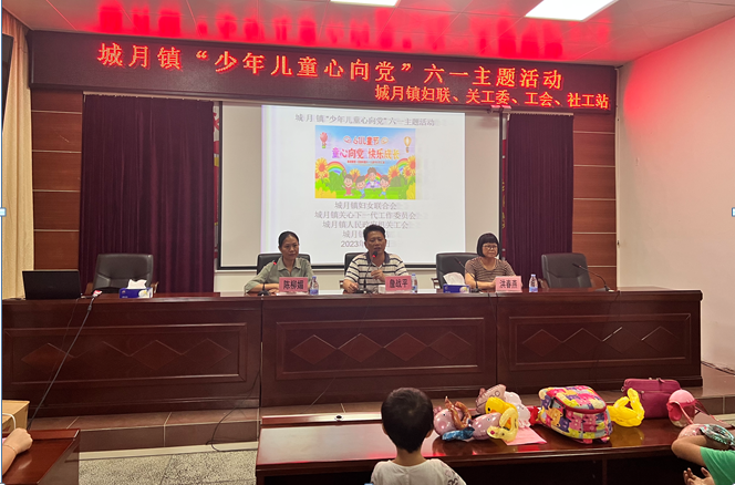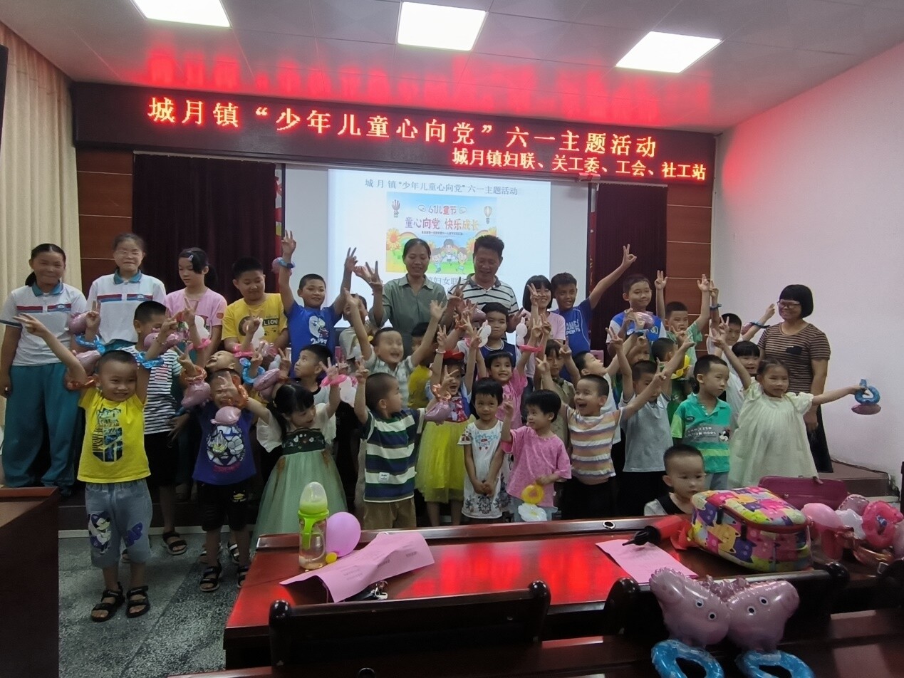 為了迎接“六一”國際兒童節(jié)的到來,進一步保障鎮(zhèn)干部子女的身心健康,加強對鎮(zhèn)干部子女的關(guān)愛,營造一個和諧有愛的環(huán)境。于2023年6月1日晚上,城月鎮(zhèn)婦聯(lián)、關(guān)工委、工會、社工站共同開展“少年兒童心向黨”六一主題活動。