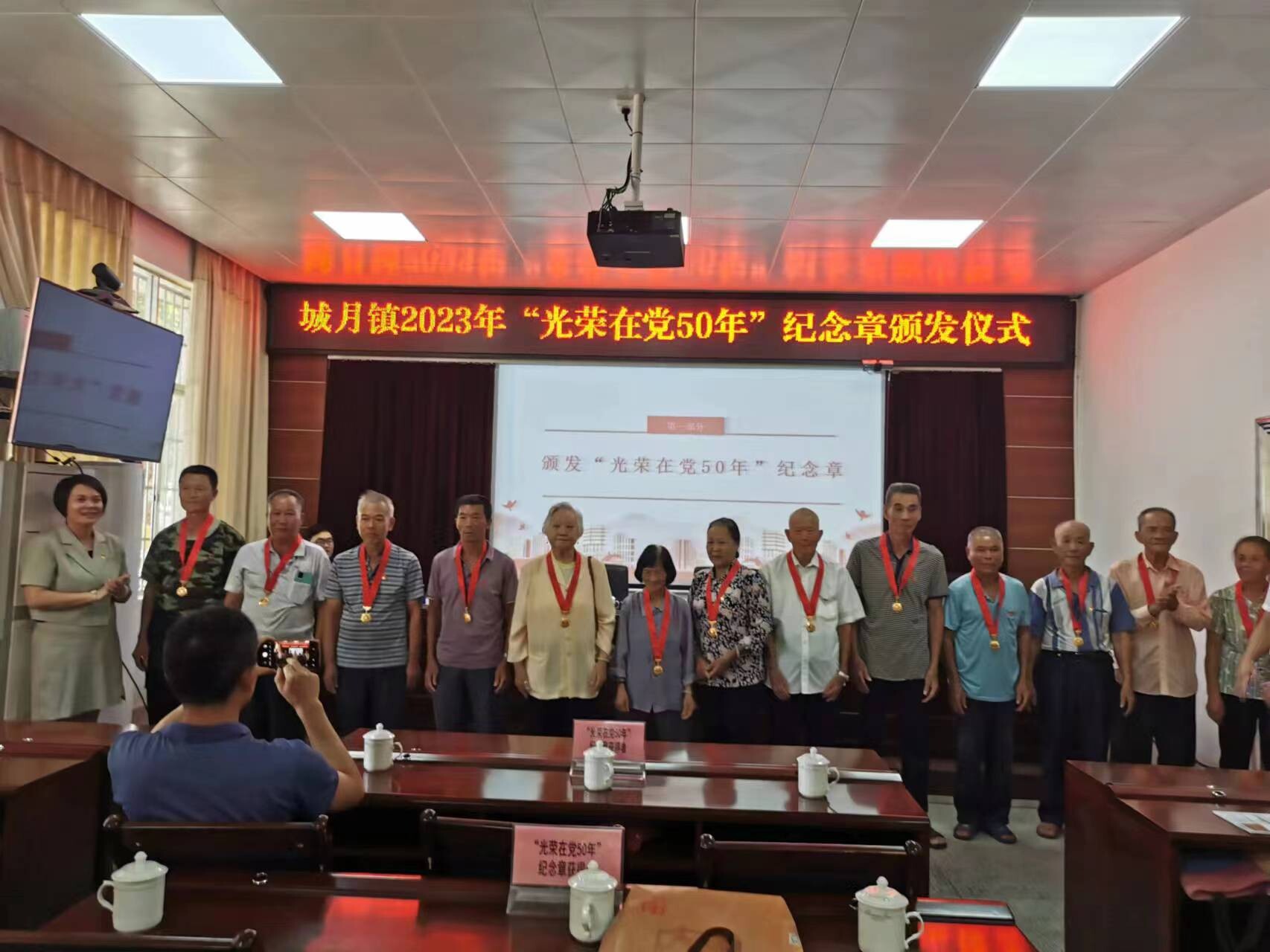 鎮(zhèn)領(lǐng)導(dǎo)與“光榮在黨50年”紀(jì)念章獲得者代表進(jìn)行合影