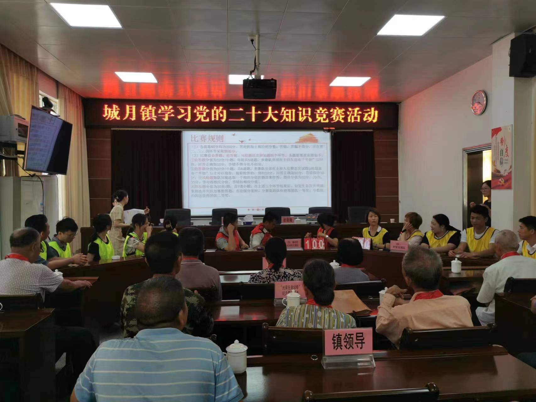 為深入學(xué)習(xí)貫徹黨的二十大精神,迎接中國共產(chǎn)黨成立102周年,進(jìn)一步激發(fā)全鎮(zhèn)黨員干部學(xué)理論奮勇爭先、干工作創(chuàng)新務(wù)實,6月30日,城月鎮(zhèn)舉辦慶?!捌咭弧濒邔W(xué)習(xí)黨的二十大知識競賽活動,營造以賽促學(xué)、比學(xué)趕超、競標(biāo)爭先的良好氛圍。鎮(zhèn)政府機(jī)關(guān)黨支部黨員、各村(社區(qū))組織委員及老黨員代表參加活動。