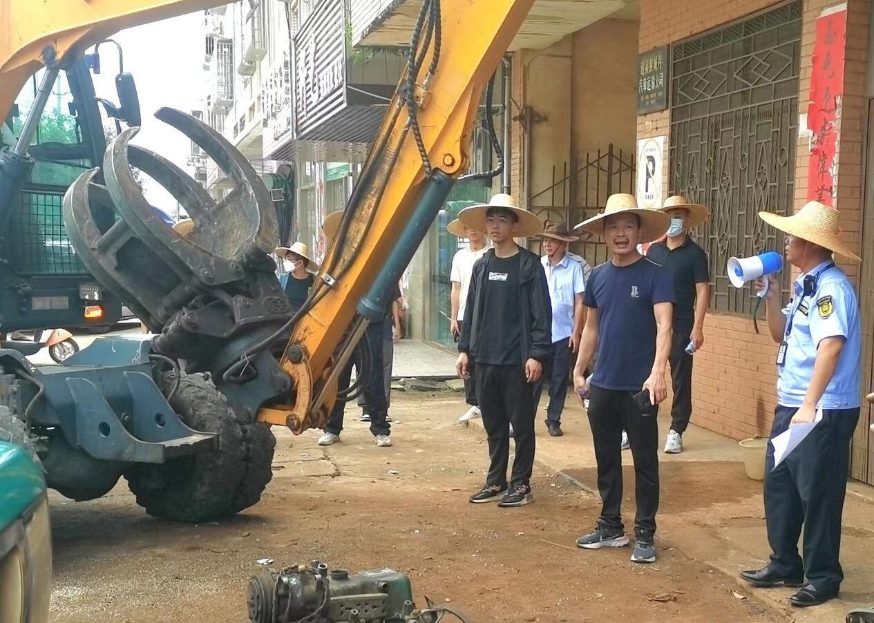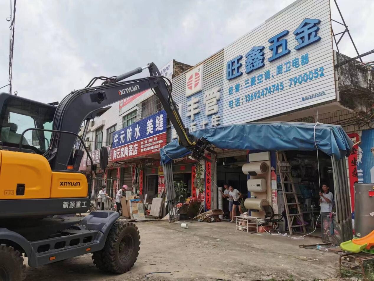 利用夾機(jī)拆除商戶亂搭建的遮陽棚