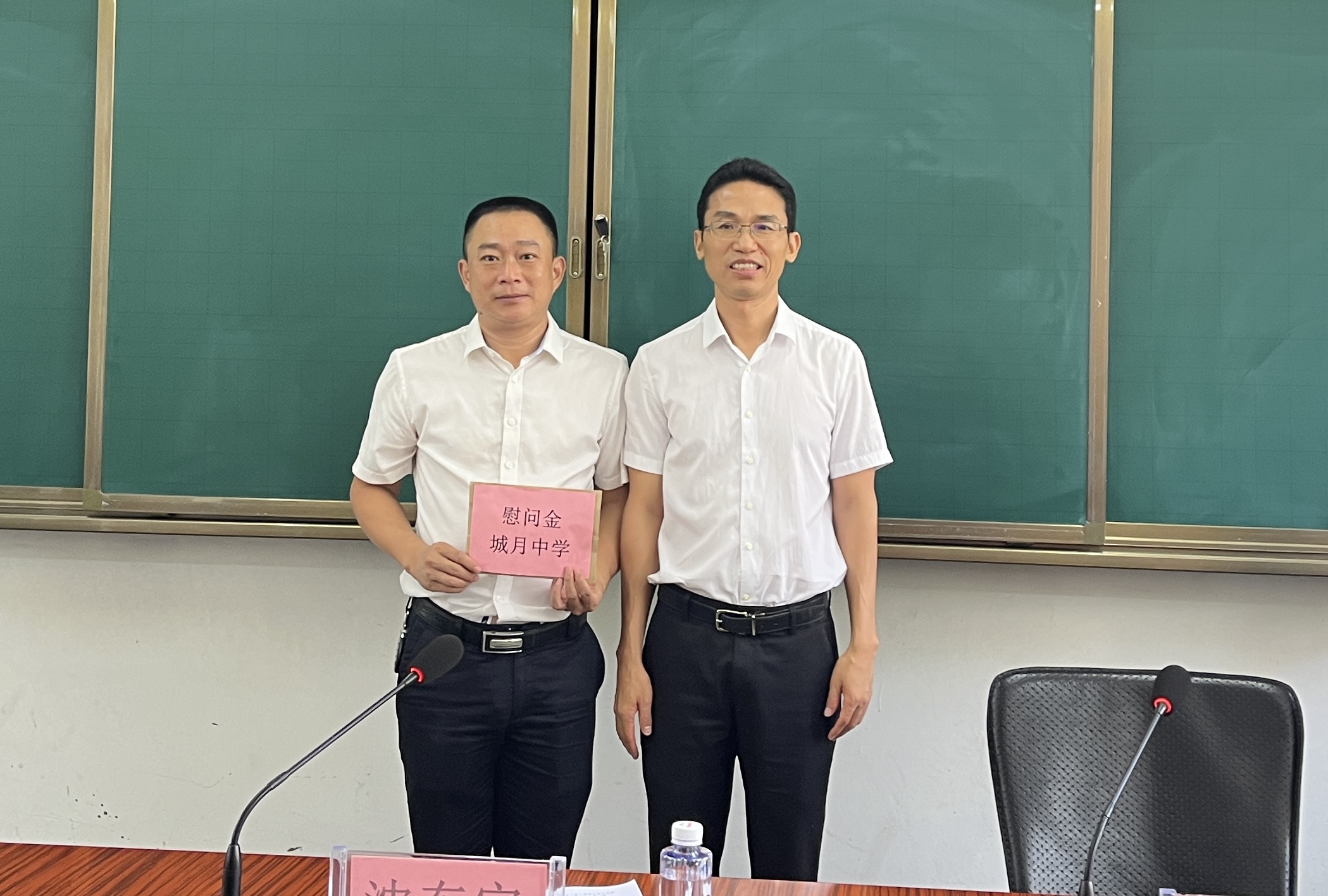 以遂溪縣委副書記、城月鎮(zhèn)黨委書記沈東宇為組長的慰問組一行先來到城月中學(xué)會(huì)議室召開慰問會(huì),縣衛(wèi)健局、縣人武部、縣婦聯(lián)、縣教師發(fā)展中心、縣第三中學(xué)、人保財(cái)險(xiǎn)遂溪支公司等單位代表,鎮(zhèn)黨委副書記、鎮(zhèn)長王武慶,鎮(zhèn)人大主席陳懷東,城月中學(xué)校長蔡德偉等參加會(huì)議。會(huì)上,德偉校長匯報(bào)了近年來學(xué)校開展教育工作的總體情況,并全面部署下一步工作計(jì)劃。接著,東宇書記代表縣委、縣政府和鎮(zhèn)委、鎮(zhèn)政府向縣掛點(diǎn)單位給予的關(guān)心與支持表示衷心的感謝,向全鎮(zhèn)廣大教育工作者致以節(jié)日的問候,對(duì)城月中學(xué)全體教師進(jìn)行表彰并頒發(fā)慰問金。會(huì)議結(jié)束后,全體人員到舞臺(tái)進(jìn)行合影留念。