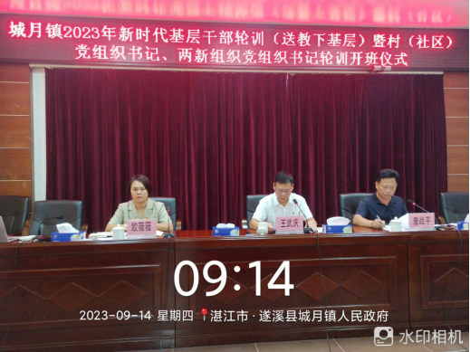 為深入學(xué)習(xí)貫徹習(xí)近平總書記視察廣東重要講話精神和關(guān)于加強(qiáng)基層基礎(chǔ)工作、提高基層治理能力等重要指示精神,貫徹落實(shí)黨中央關(guān)于全面推進(jìn)鄉(xiāng)村振興、健全黨組織領(lǐng)導(dǎo)的城鄉(xiāng)基層治理體系的決策部署,9月14日城月鎮(zhèn)黨校舉辦“城月鎮(zhèn)2023年新時(shí)代基層干部輪訓(xùn)(送教下基層)暨村(社區(qū))黨組織書記、兩新組織黨組織書記輪訓(xùn)”集中培訓(xùn)的開班儀式。全鎮(zhèn)村(社區(qū))“兩委”干部、村務(wù)監(jiān)督委員會主任、駐鎮(zhèn)幫鎮(zhèn)扶村工作隊(duì)全體成員、兩新組織黨組織書記及黨建指導(dǎo)員參加培訓(xùn)。