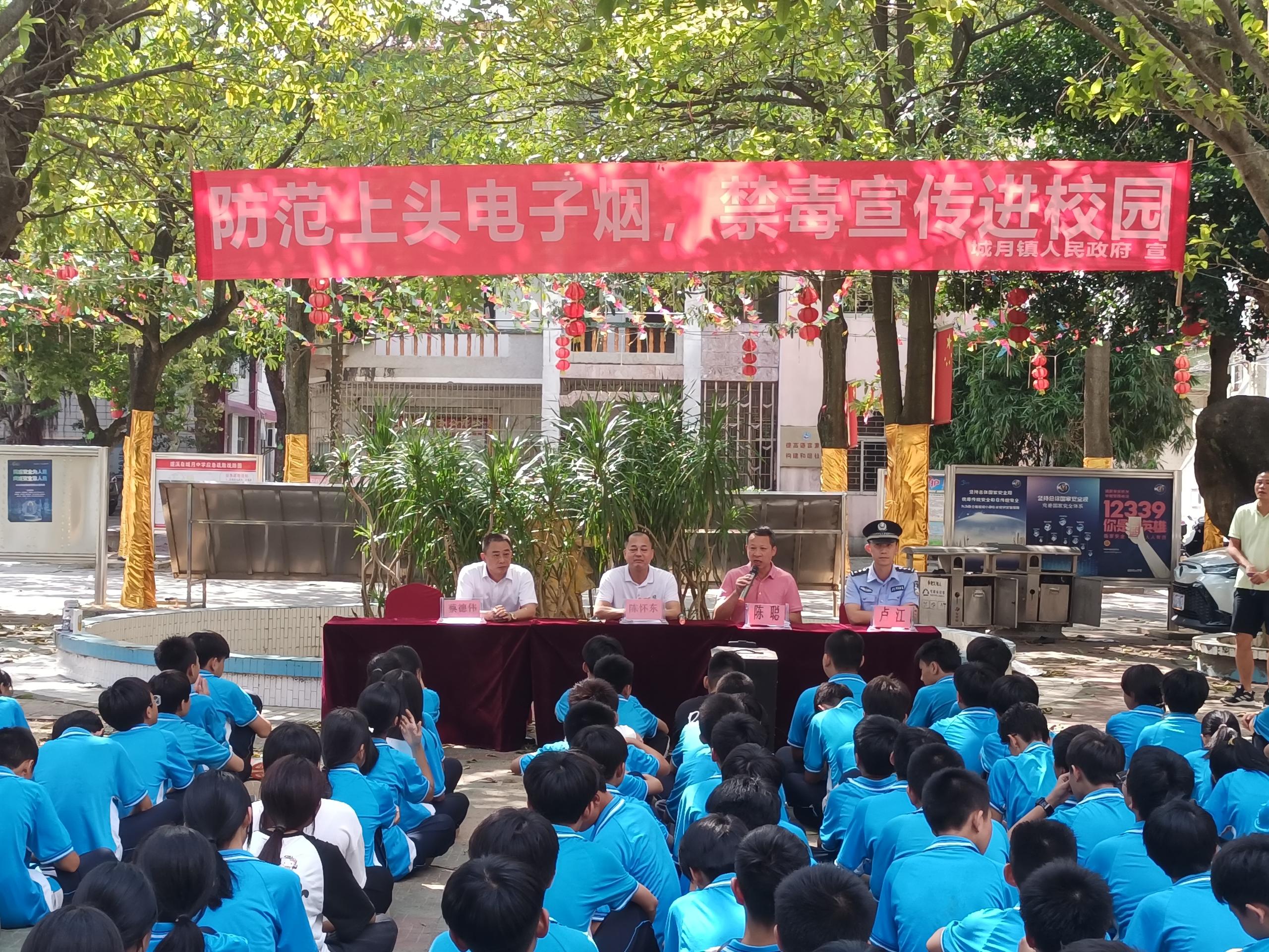 9月28日下午,鎮(zhèn)人大主席陳懷東、鎮(zhèn)委副書記陳聰組織城月派出所、鎮(zhèn)綜治辦到城月中學(xué)開展“防范上頭電子煙,禁毒宣傳進(jìn)校園”活動(dòng)。陳懷東主席在活動(dòng)中重點(diǎn)強(qiáng)調(diào)了禁毒教育、防溺水、交通安全及即將到來的中秋國慶假期安全工作,進(jìn)一步提升城月中學(xué)師生禁毒及各項(xiàng)安全意識(shí),再度扭緊平安校園建設(shè)責(zé)任鏈條。