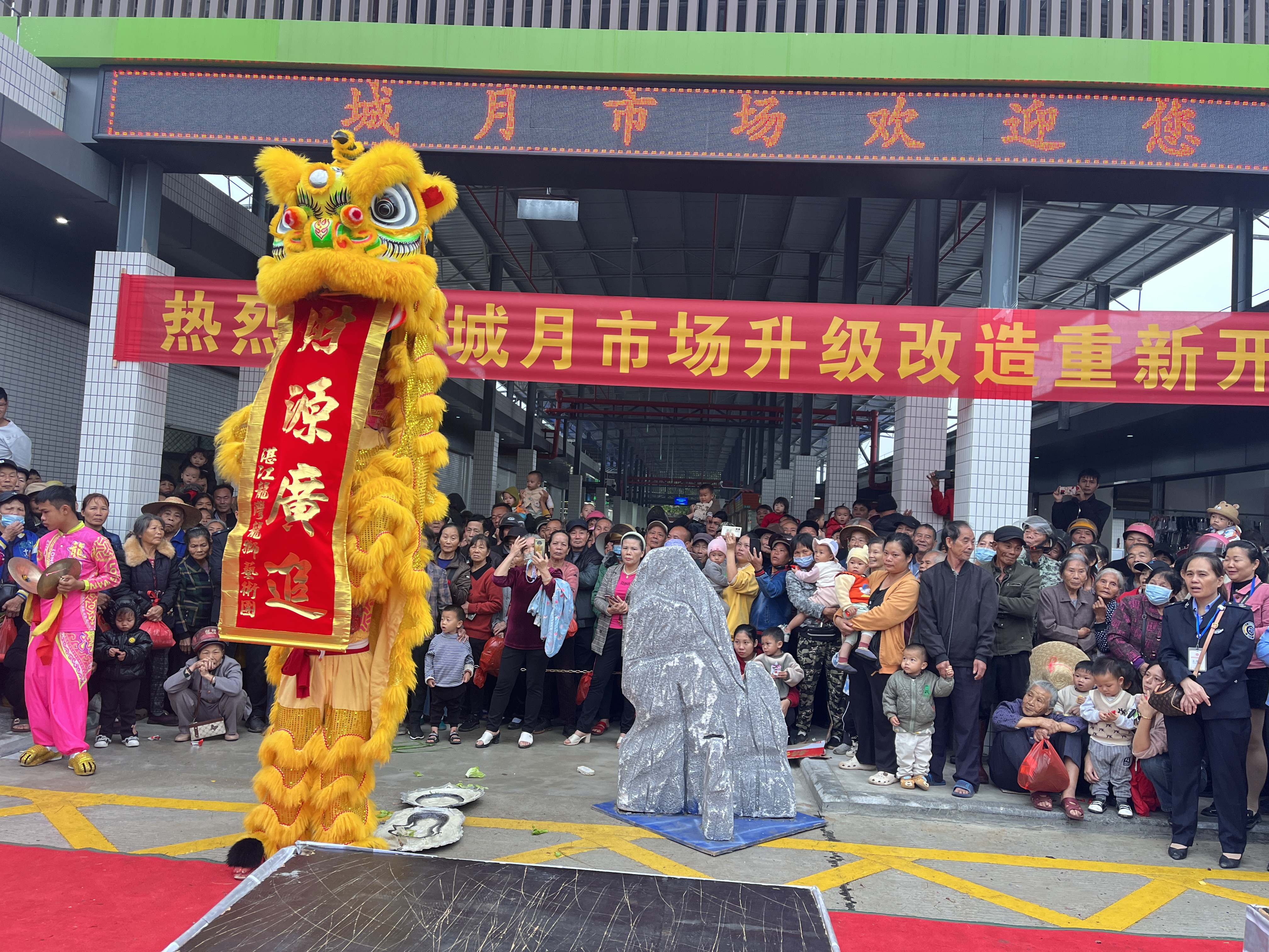 開業(yè)儀式開始后,由遂溪縣市場物業(yè)管理局局長陳澤武和城月鎮(zhèn)黨委副書記、鎮(zhèn)長王武慶一同舉行揭牌儀式,隨后進行精彩的醒獅隊表演,為城月市場揭開嶄新的一頁。